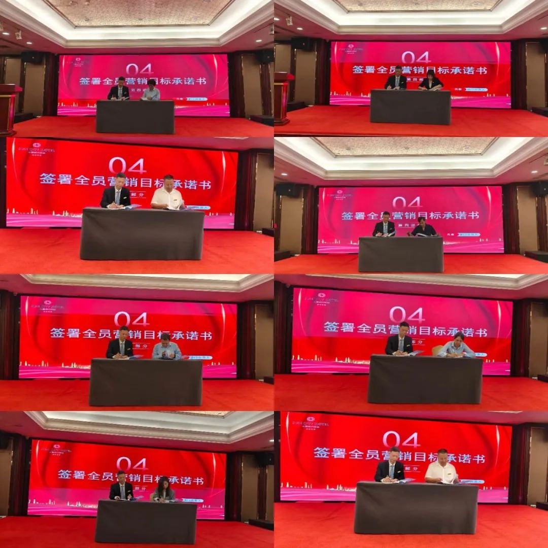 为全力推动小宴会落地,酒店启动了全员营销机制。会上发布了核心营销工具—— “99元小宴会预存卡”。该卡预存100元可直接抵餐费,并尊享六重超值礼遇(含焕新客房、主题布置、定制蛋糕等)。酒店设定了总售卡目标,并按职级分解至每位员工。配套阶梯式激励政策同步公布,充分激发全员销售热情。酒店管理层也和各部门经理现场签署了目标承诺书,明确了职责与任务。